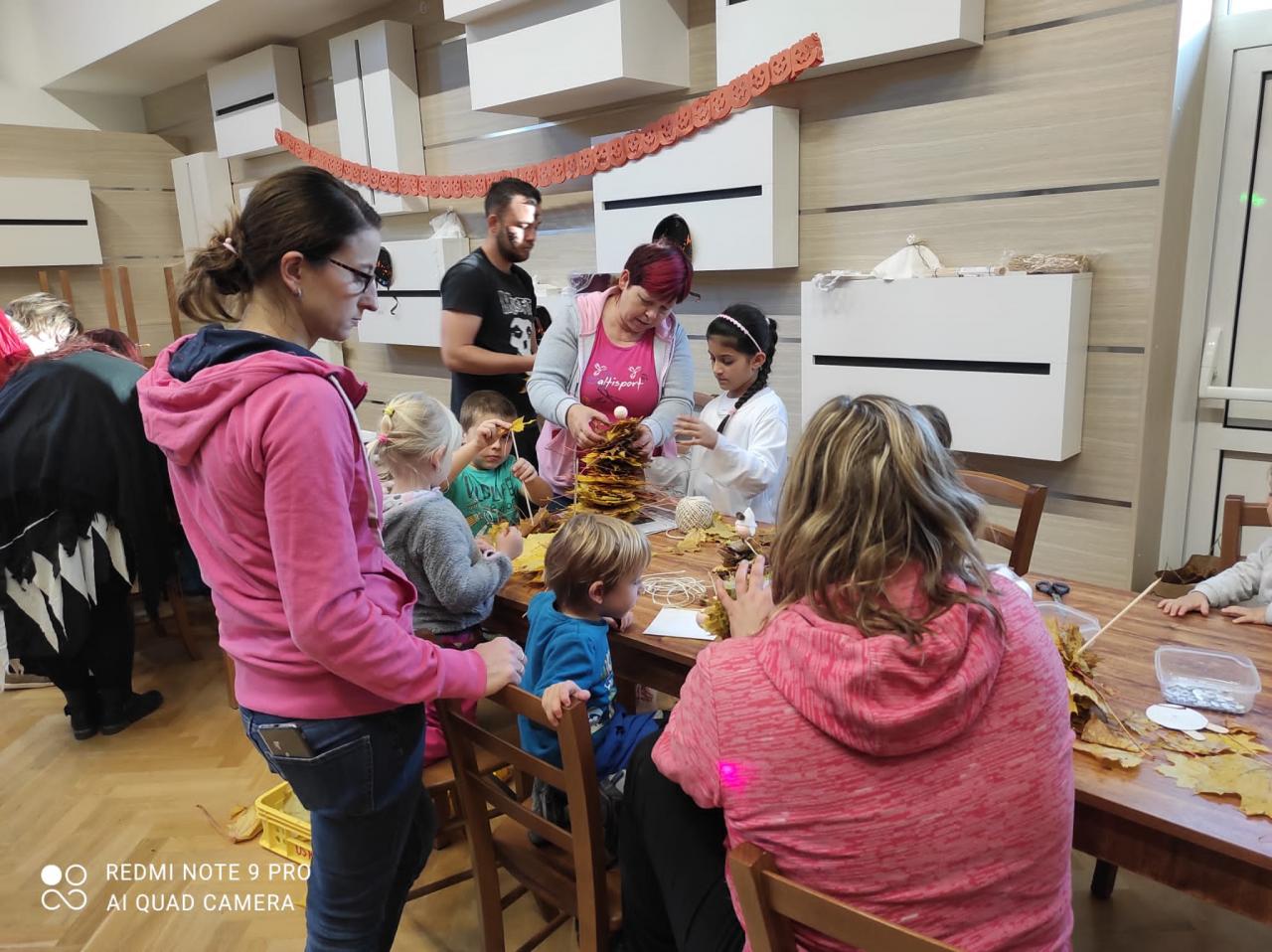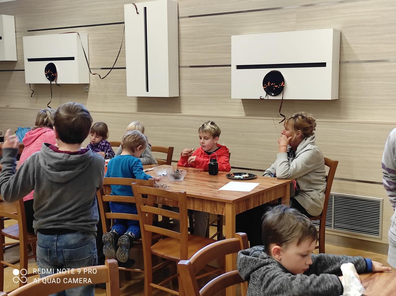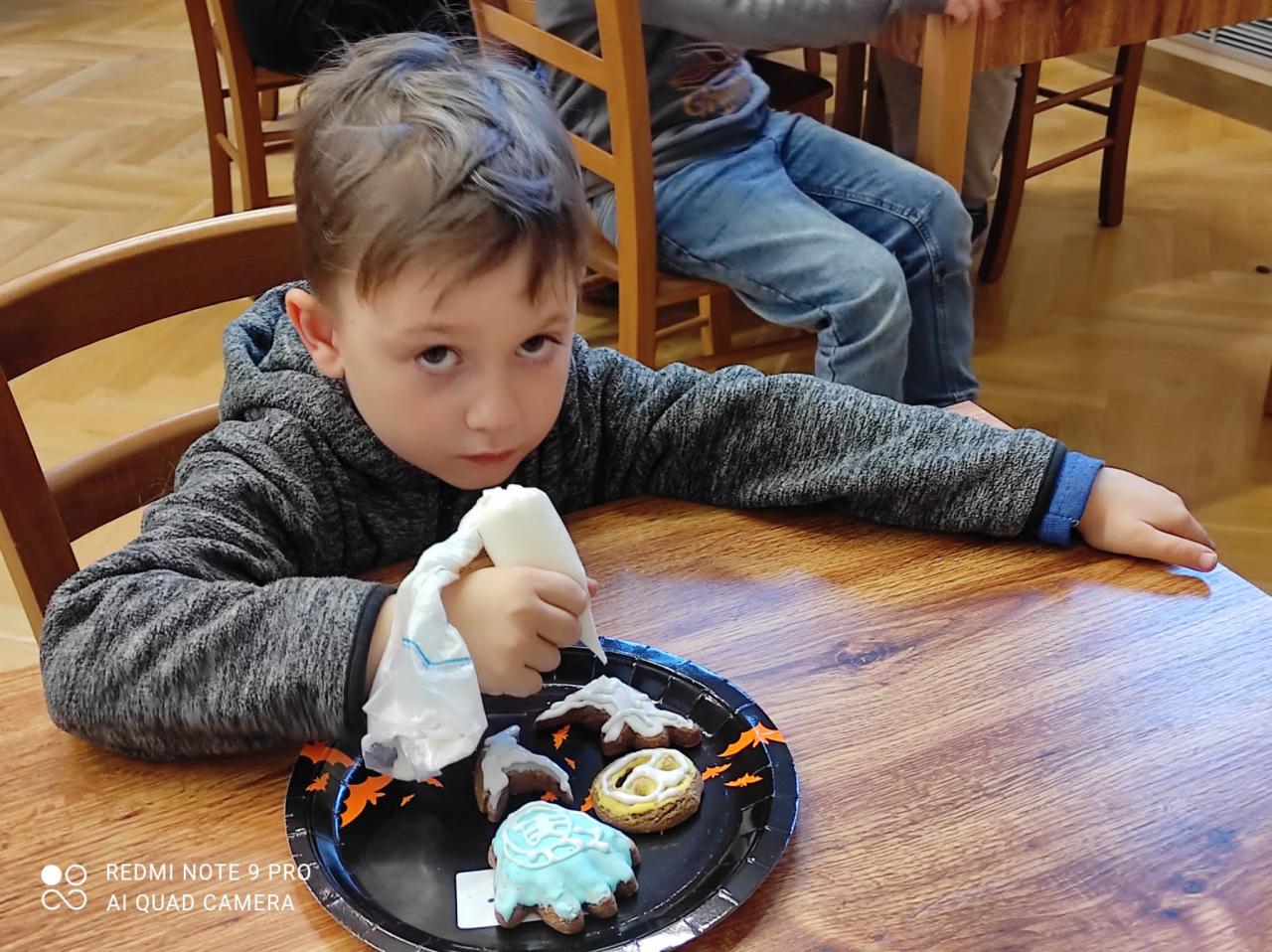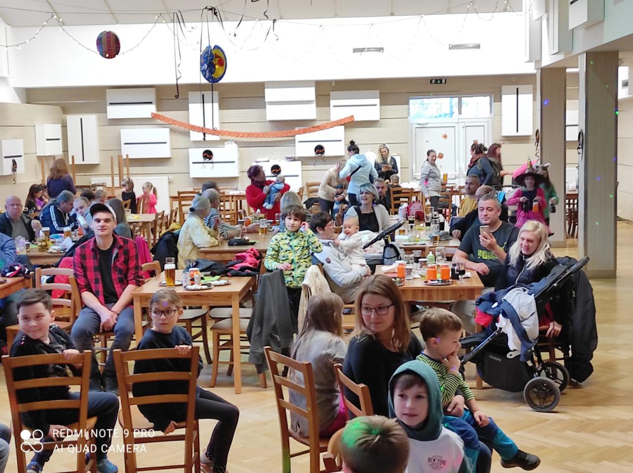 Celou oslavu pojali jako takovou velkou dílnu, kde nám děti i rodiče a prarodiče ukázali svoji zručnost, dlabaly se dýně, vyráběli skřítky z listí, netopýry z ruliček od toaletního papíru, zdobily se perníčky, vyráběly lucerničky.