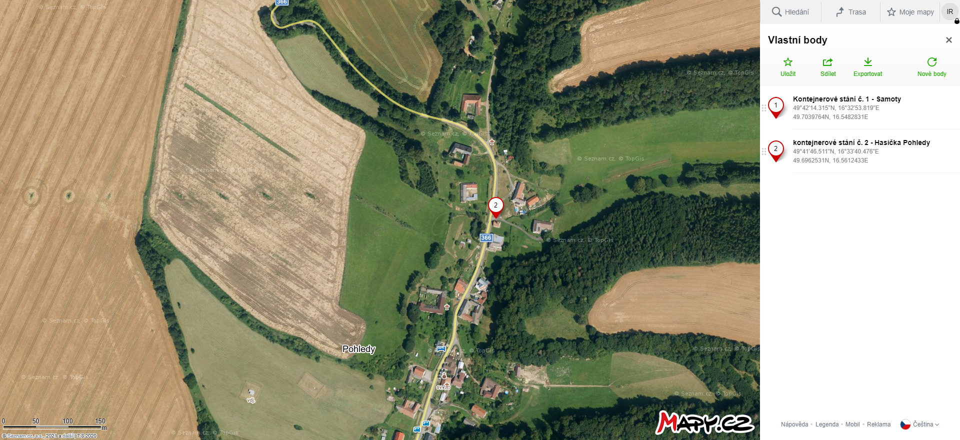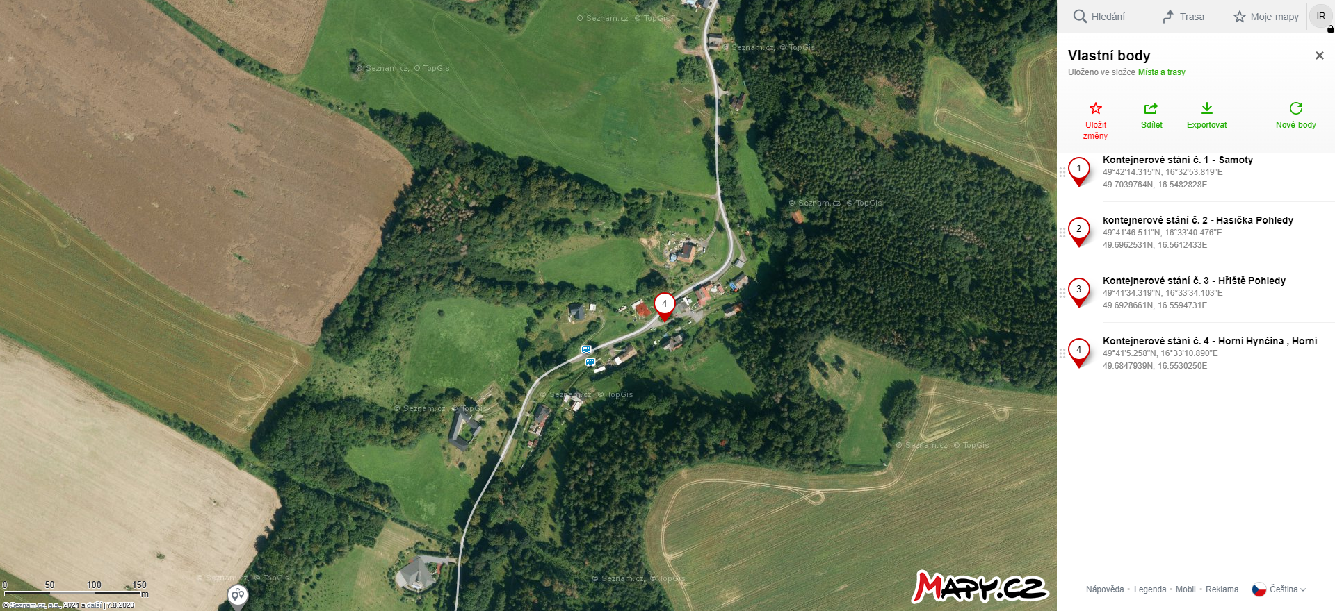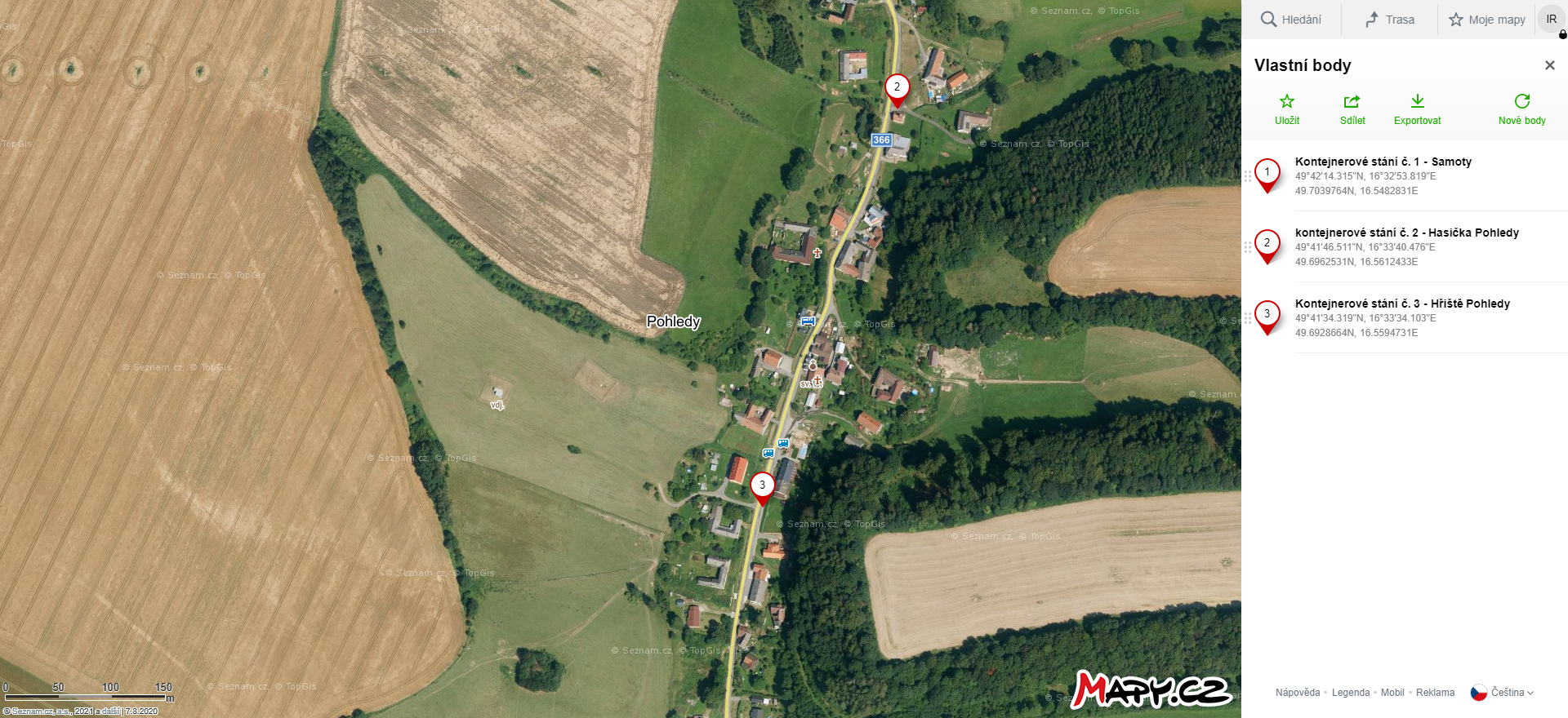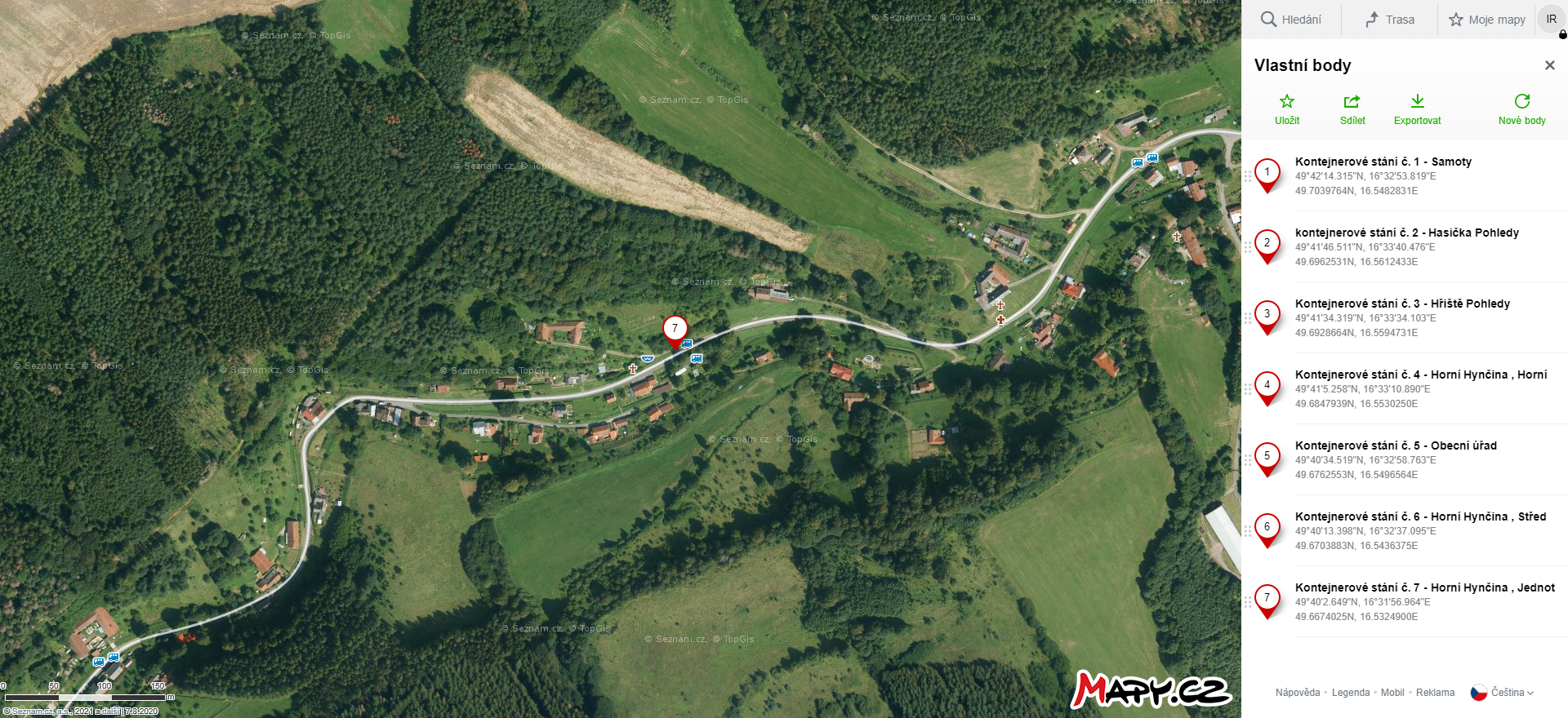 Seznam kontejnerových stání - klikni na odkaz v mapách https://frame.mapy.cz/s/puramabugo